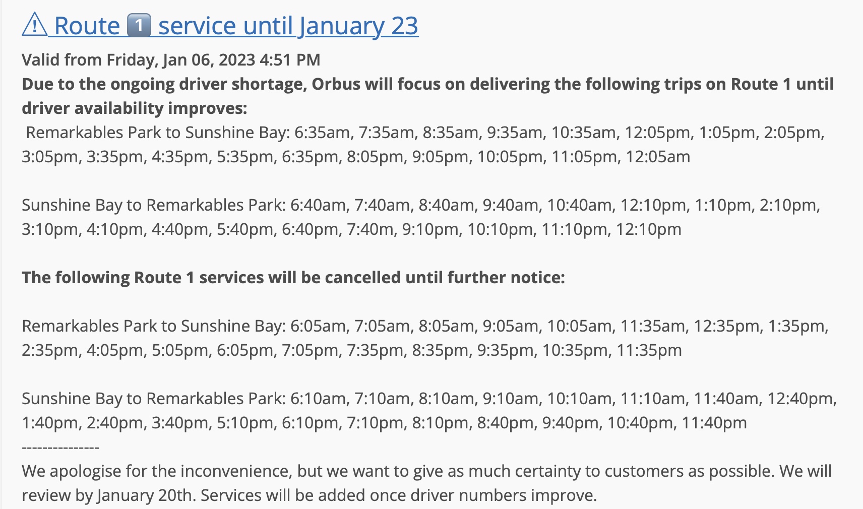 Read more about "Orbus cancellations Jan 6"... -