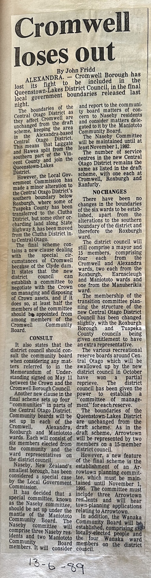 Cromwell newspaper clipping